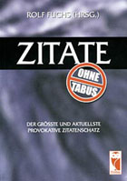 Eine Zitatensammlung, oder wenn ein Spruch Goethes, eine Erbaulichkeit aus der Bibel, und einige indische, griechische, französische Weisheiten zu tausend Seiten Kopfschwindeln werden. Rolf Fuchs, ein Österreicher, hat es besser, d. h. unterhaltsamer gemacht. Auf knapp 1000 Seiten versammelt er den „größten und aktuellsten provokanten Zitatenschatz“, „Zitate ohne Tabus“ betitelt, was sogleich die Aufgabe nennt, die sich der Autor stellte. Anders als in anderen Sprüchesammlungen verzichtet Fuchs auf seichte, versandete, stumpf gewordene Denkkünsteleien („Philosophen habe ich nur zitiert, soweit ihre Äußerungen nicht in einer unverständlichen Geheimsprache verfasst sind“, Vorwort), er möchte nicht nur Kluges und Gutes vermitteln, sondern mit Stacheligem, Witzigem und Schnurrigem aufwecken. Neben Oscar Wilde viel Nietzsche, Kraus und Ebner-Eschenbach, S. J. Lec, auch Goethe, und viele kleine Große wie Gerhard Roth, Werner Schneyder, Paul Feierabend, E. M. Cioran, Gösta Maier und Rolf Fuchs, der in seinem Sprüchebuch sein eigenes Sprüchegut neu editiert. Jeder Leser wird bei der Lektüre etwas für sich entdecken, sei es etwas Nachdenken, oder eine lange gesuchte Formulierung, oder einen neuen Lieblingsautor.