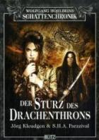 Der 11. Band der Schattenchronik „Der Sturz des Drachenthrons“ zeigt vor Beginn der Handlungsschilderung eine Abbildung, die, wie im Band zuvor, schwarz-weiß gezeichnet ist und eine ovale Form hat. Sie zeigt Totenkopfschädel und in die Höhe stehende, teils spitze Knochen oder Knochenfragmente. Es scheint, als würden die Schädel einen verfolgen und einem böse und sehr finster entgegen blicken.