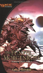 Die Fünfte Morgenröte Dieser abschließende Band der Mirrodin-Trilogie knüpft unmittelbar an die Ereignisse des zweiten Buches, “Das Nachtstahl-Auge”, an. Ein neuer, ein grüner Mond, geboren aus reinem Mana, steht an Mirrodins Himmel; Memnarch, der wahnsinnige Hüter, scheint besiegt. Erschöpft kehren Glissa und Slobad nach geschlagener Schlacht zurück ins Knäuel, wo sie allerdings sofort nach ihrer Ankunft verhaftet und unter Mordanklage gestellt werden. Die Klägerin: Glissas totgeglaubte Schwester, Lyese! Während die Elfin und der Goblin nur auf Grund der Intervention eines alten Freundes einer Verurteilung entgehen und sich die Schwestern schließlich sogar versöhnen, vernichten Gleichmacher unter Führung grotesk mutierter Vedalken Bruennas Volk bis auf den letzten Menschen. Einzig der Magierin gelingt es, sich zum Knäuel zu teleportieren. Bei einem Angriff der Aerophins auf ihre Heimstatt wird Glissa von Malil schwer verwundet, kann aber zusammen mit Bruenna und Lyese in die Stadt der Leoniden, Taj Nar, fliehen; Slobad jedoch fällt dem Schergen Memnarchs in die Hände. Der Hüter Mirrodins ist keineswegs geschlagen, sondern plant, die Völker der Oberflächenwelt mittels Heerscharen neuer Konstrukte auszulöschen; und dem Goblin hat er dabei ein besondere Rolle zugedacht. Auch in Taj Nar finden die Flüchtlinge keine Sicherheit: der neue Anführer der Nim, der auferstandene Yerth, führt Legionen von Untoten gegen die Stadt, während seine nekromantische Magie dafür sorgt, dass sich die Sümpfe des Mephidross immer weiter in die Glimmerleere ausdehnen. Die drei Frauen fassen den Plan, zunächst die Leoniden in ihrem Kampf zu unterstützen, um anschließend Slobad aus Memnarchs unterirdischen Reich zu befreien. In den abtrünnigen Goblins unter Führung des Propheten Dwugget sehen sie potenzielle Verbündete und brechen daher zu einer diplomatischen Mission Richtung Goblin-Berge auf. Doch erneut machen Memnarchs Handlanger ihnen einen Strich durch die Rechnung und so müssen die Elfin und ihre leonidischen Freunde allein auf sich gestellt Yerth gegenüber treten. Während des Kampfes gerät Glissa in eine magische Falle, eine Art Stasisfeld ... ... und wacht fünf Jahre später in einer Welt auf, die sich grundlegend verändert hat. Slobad ist nach unsäglichen Foltern zu einem Diener Memnarchs geworden, Nim und Vedalken haben sich verbündet, Taj Nar ist gefallen und die Gemahlin des neuen Khas der Leoniden heißt Lyese. Doch diese Lyese hat nur noch wenig mit Glissas Schwester gemein. Es scheint keine Hoffnung mehr für Mirrodin zu geben .... Auch wenn “Die fünfte Morgenröte” als seichte Fantasy-Hausmannskost zu sehen ist, so wirft der Roman dennoch einen Lichtschein auf diese bisher äußerst trübe Trilogie. Cory J. Herndon gelingt im Abschlussband etwas, woran seine beiden Co-Autoren kläglich gescheitert sind: eine in weiten Teilen unterhaltsame oder wenigstens lesbare Geschichte! Denn auch wenn sich der Autor bisher noch keine belletristischen Meriten verdienen konnte, so bringt er eine Voraussetzung mit, die McDermott und Lebow offensichtlich abgeht: einen Funken Talent! Natürlich kann Herndon in diesem dritten Band nicht jedes der bisherigen Versäumnisse wettmachen, sondern folgt -und muss es wahrscheinlich auch- seinerseits einem insgesamt konfus-oberflächlichen und actionbetonten Storyexposé, dessen traurigen Höhepunkt ein deutlich erkennbarer Bruch im Erzähl- und Lesefluss in Folge des fünfjährigen “Zeitsprunges” nach gut der Hälfte des Romans darstellt. Doch trotz dieser Widrigkeiten, der Logiklöcher und Sprünge gelingt es ihm, Action und beschreibende, ruhigere Passagen ausgewogen nebeneinander zu stellen. Er nimmt sich Zeit für Erläuterungen und Erklärungen, wobei er vor allem den Dialogen seine gesteigerte Aufmerksamkeit widmet. Daher erfährt der Leser über Mirrodin, die Protagonisten oder auch ganz spezifische Magic-Elemente in diesem einen Roman mehr als in den beiden anderen zusammen. Dank Herndon wandeln sich Glissa, Slobad, Bruenna und Raksha Goldjunges wider Erwarten doch noch von hohlen Figuren in denkende, mitfühlende Wesen, während ihre großen Widersacher, Memnarch und Malil, endlich glaubhaft psychopathische Massenmörder mimen dürfen. Ähnlich erfreulich gestaltet sich die Darstellung der Kämpfe, die “Kampfchoreografie”: fantasievoller, plastischer und nachvollziehbarer als in den beiden ersten Bänden reißt sie den Leser nun mehr eher mit, als dass sie ihn sanft entschlummern lässt, denn nicht die schiere Masse, sondern die Klasse der Gegner wird zum zentralen Moment des Geschehens; Massenaufmärsche hingegen werden in Nebensätzen abgehandelt. Aus stilistischer Sicht mag das Buch kein großer Wurf sein, aber es ist mit lockerer Hand geschrieben und von daher entspannend zu lesen, der Wortschatz Herndons erscheint unendlich viel größer als der Lebows, dem Autor des zweiten Bandes, und die Übersetzung, für die Timothy Stahl diesmal wieder alleine verantwortlich zeichnet, hält keine weiteren verstörenden Überraschungen bereit. Fazit: Trotz unverkennbarer Schwächen im Aufbau ein Alles in Allem versöhnlicher Abschluss der Mirrodin-Trilogie, der die ersten beiden Machwerke zwar nicht vergessen macht, aber erneut beweist, dass “Magic The Gathering”-Romane tatsächlich mehr als ein Biotop für viertklassige Autoren sein können.