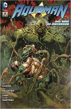 Kampf der Elemente Während sich Mera in Begleitung einiger Getreuer in einen Teil Atlantis' aufmacht, der rückständig und vergessen vom Rest der Gesellschaft eine ganz eigene Unterwasserweltanschauung und einen vom Königshaus unabhängigen Lebensstil entwickelt hat, weil sie dort die Hintermänner der Attentate auf sie vermutet, liefern sich Aquaman und Swamp Thing einen harten Kampf, da der Atlanter den Avatar des Grüns für eine unheimliche Bedrohung verantwortlich macht. Schlussendlich können die beiden den pflanzlichen Feind zwar besiegen, aber Swamp Thing macht Arthur unmissverständlich klar, wer der eigentliche Herrscher über die Flora des Wassers ist. Und eine neue Gefahr wartet auf Aquaman: ein künstliches, durch Genmanipulation erschaffenes Wesen, das die Fähigkeiten zahlreicher aquatischer Spezies im Körper eines Menschen in sich vereint und das den König herausfordert. Chimera – so der Name des Wesens – will Arthur in einen Kampf zwingen, indem es an Land Gräueltaten begeht und der Atlanter hat seinem gestaltwandlerischen Feind in der Tat nur wenig entgegenzusetzen. Obgleich mit Swamp Thing zunächst ein starker, wohldefinierter Charakter einen epischen, über das Aquaman-Pantheon hinausweisenden Unterton in die Story mit einbringt und obwohl mit Chimera ein interessanter neuer Gegner auftaucht, hat das Setting insgesamt an Kraft und Innovationsfreude verloren. Der Neubeginn, der Relaunch der Serie mit den selbstironischen, humorvollen Untertönen und dem grandiosen Artwork Ivan Reis scheint endgültig ad acta gelegt und Aquaman ist im profanen Superhelden-Kleinklein angekommen. Immerhin wartet das „Futures End“-Tie-in dieses Sammelbandes mit einem Auftritt der „Anderen“ - The Others – auf, aber dennoch ist auch diese Story alles andere als originell und zudem mit einem unterdurchschnittlichen Artwork geschlagen. Fazit: Konventioneller Mainstream in Bezug auf Story und Artwork. Die erzählerische und künstlerische Frische der ersten Hefte des Relaunches gehören der Vergangenheit an, sodass Aquaman jener Langweiligkeit, die Figur und Setting vor dem Neubeginn auszeichnete, gefährlich nahe kommt. Verzichtbar!