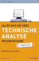 „Der Technische Analyst geht davon aus, dass die aktuellen Kurse bereits alle relevanten Fundamentaldaten und Markterwartungen beinhalten.“ So beschreibt Pierre Daeubner, Redakteur des „TradersJournal“ den Ansatz der technischen Analyse, die sich mit dem Kursverlauf der Unternehmensaktien beschäftigt, anders als die Fundamentalanalyse, die sich mit dem Unternehmen selbst beschäftigt. Der Autor stellt die verschiedenen Darstellungsformen der Aktiencharts vor und die Techniken, mit der diese analysiert werden können wie Trend, - Formations- und Volumenanalyse. Daeubner zeigt wie sich im Chartverlauf Linien finden lassen, die den Trend der Aktie verdeutlichen und Trendkanäle, in deren Grenzen sich der Trend bewegt. Bei der Formationsanalyse handelt es sich um die Erforschung der „Geometrie des vergangenen Kursverlaufs.“ Daeubner zeigt die typischen Muster und gibt allgemeine Regeln an die Hand wie sich aus Abständen und Formen wahrscheinliche Kursverläufe prognostizieren lassen. Bei der Volumenanalyse geht es um das Verhältnis des Kursverlaufs zur Anzahl der getätigten Geschäfte, auch Börsenumsatz genannt. Daeubner erklärt wie aus der gemeinsamen Betrachtung der Verläufe von Kurs und Volumen Rückschlüsse auf die Nachhaltigkeit von Kursentwicklungen gezogen werden können. Darüber hinaus stellt er eine Reihe speziellerer Analysetechniken vor. Besonders positiv herausgehoben werden muss die Leserfreundlichkeit der Darstellung. Alle Grafiken bilden reale Börsenkurse ab und werden vom Autor in klaren Analyseschritten, oft in Unterpunkte gegliedert, erklärt. Am Ende jedes Abschnittes wird in einem grauen Kästchen ein Fazit gezogen und auf weiterführende Literatur verwiesen. Als Einführung für interessierte Privatanleger ist das Buch sehr zu empfehlen.